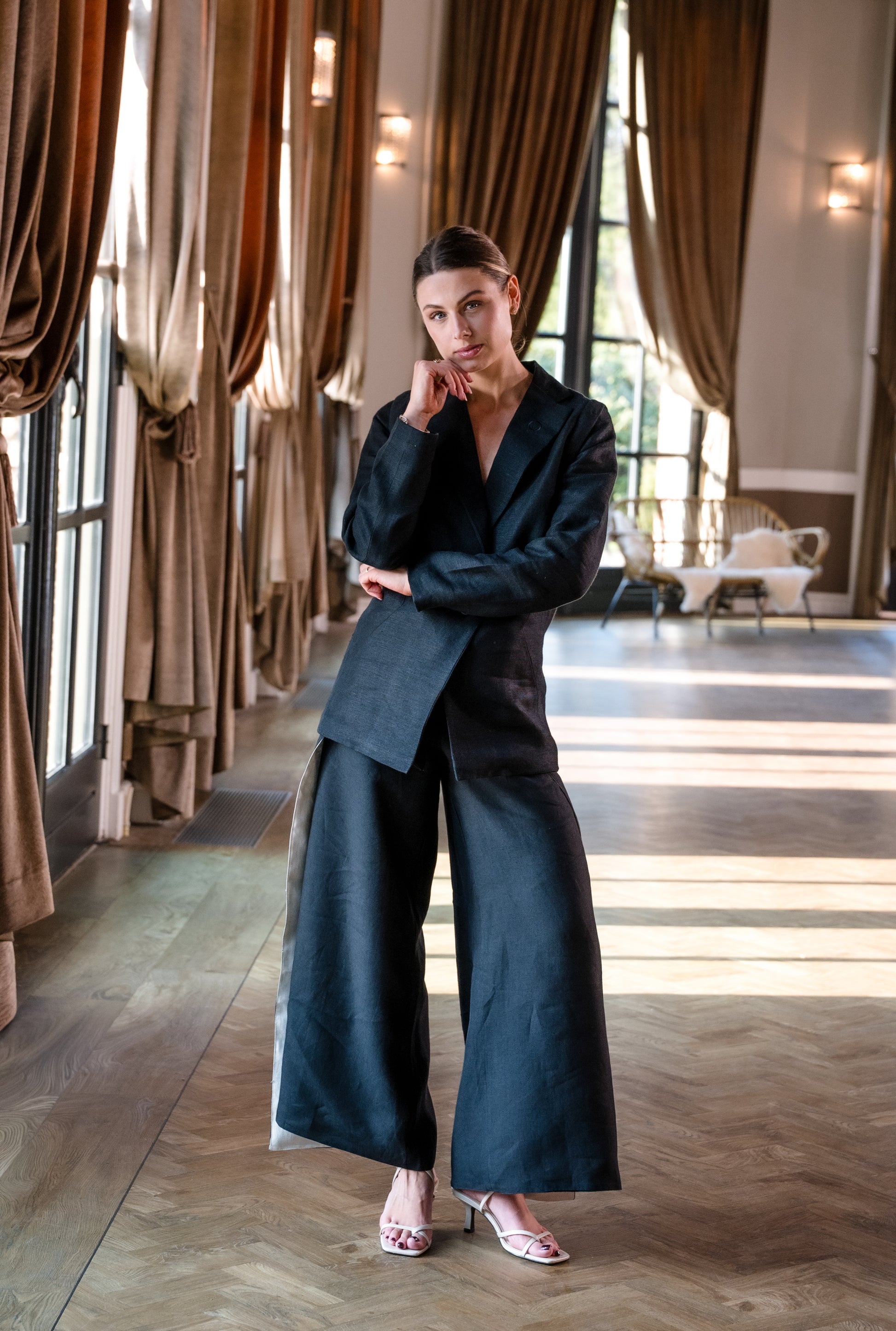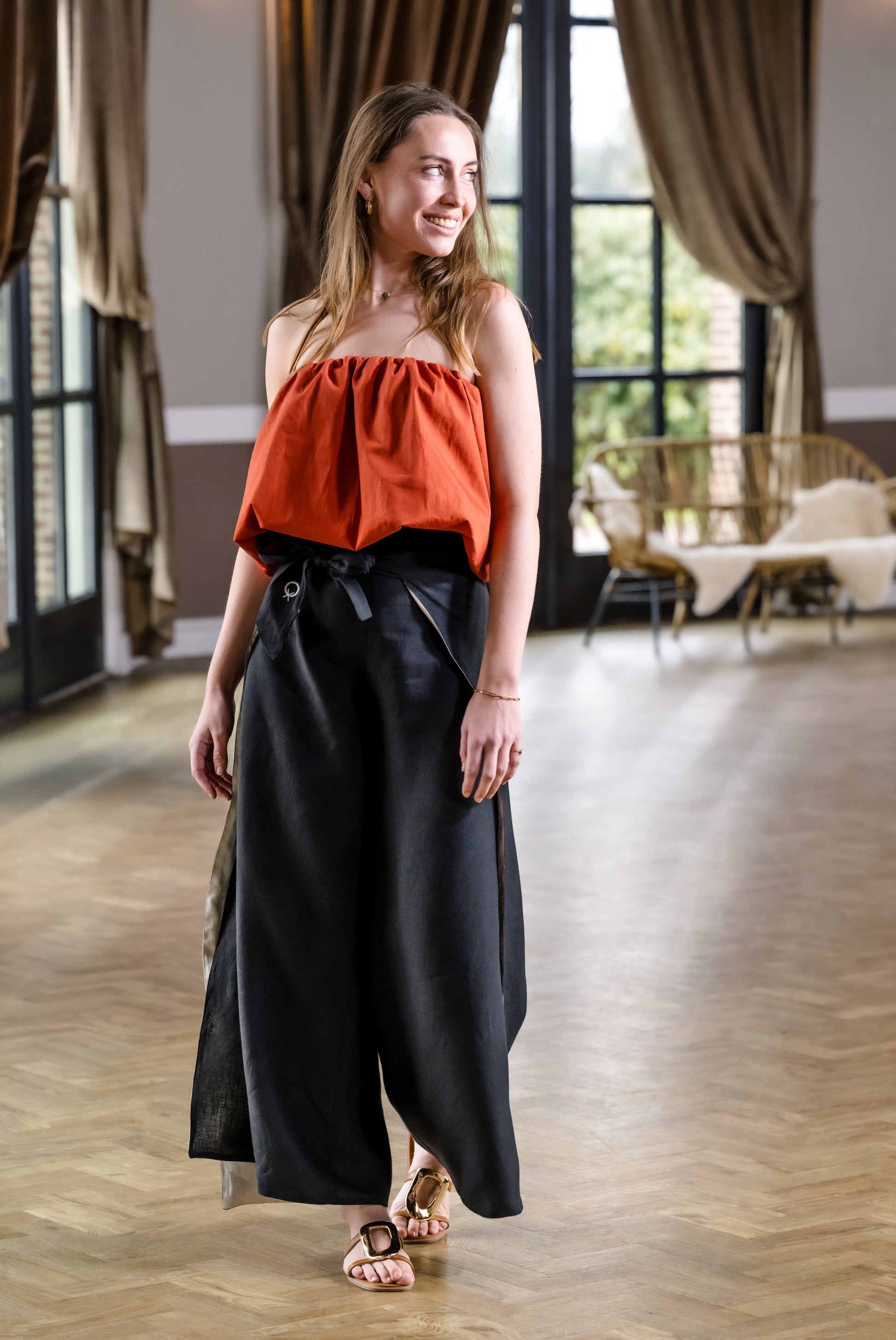 No.1 is een elegante wikkelbroek gemaakt van 100% hoogwaardig linnen.